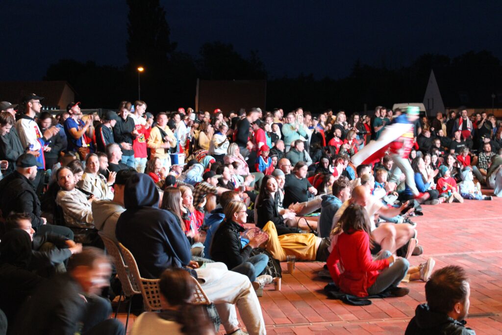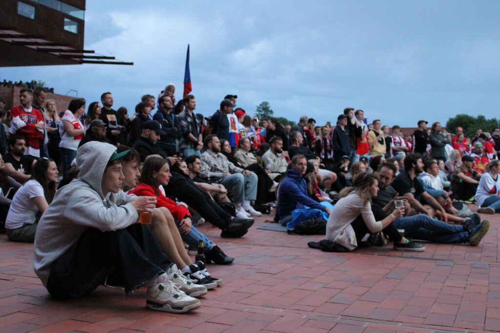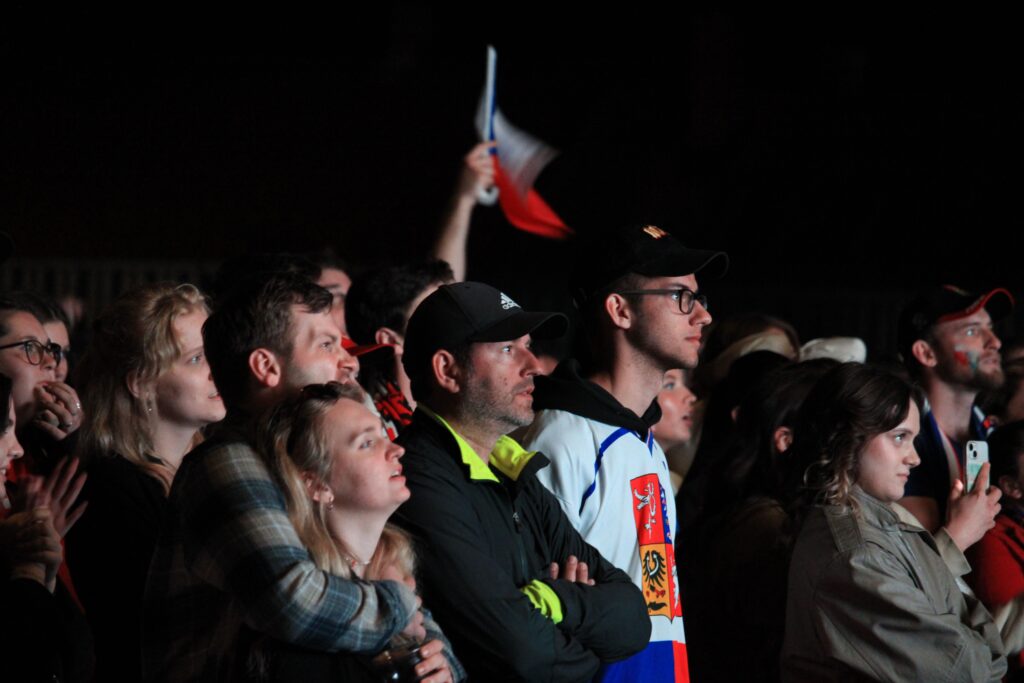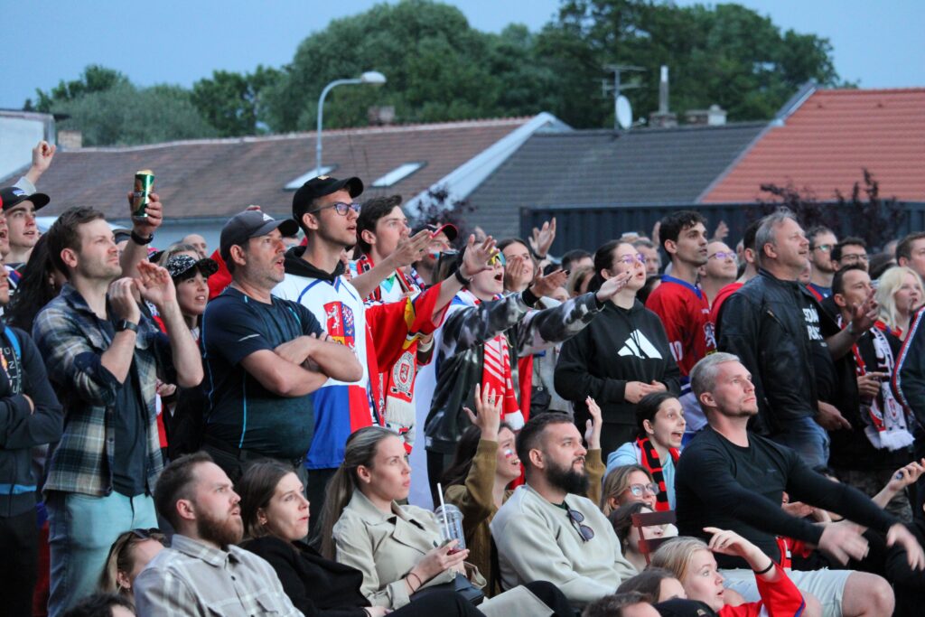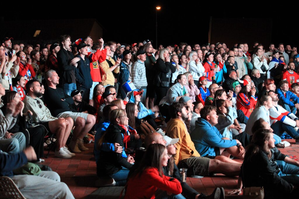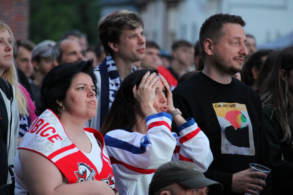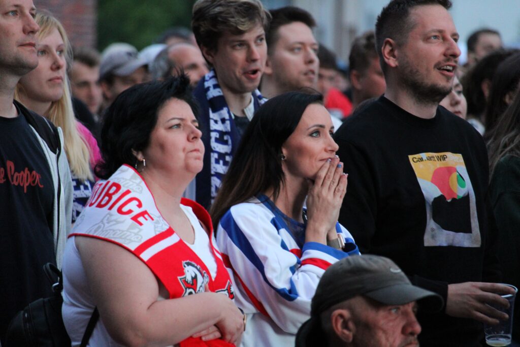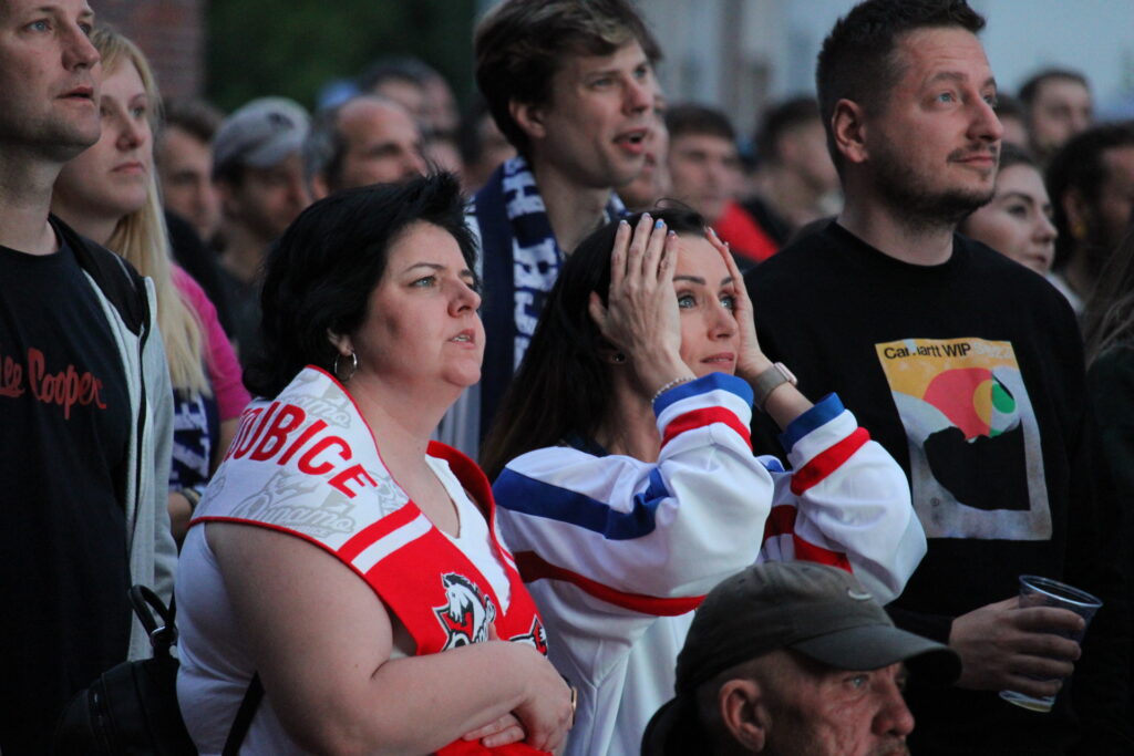 V Pardubicích se už před dvacátou hodinou zaplnil plac u Automatických mlýnů, kde se před velkoplošnou obrazovkou shromáždily stovky fanoušků, aby podpořily Český nároďák, a to se povedlo.