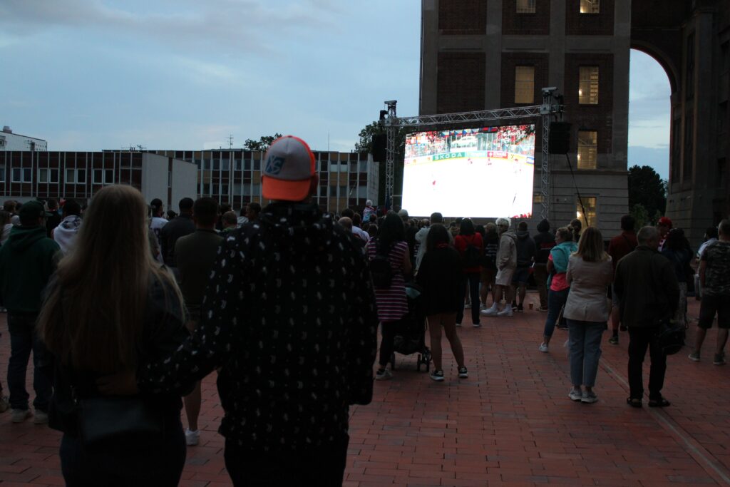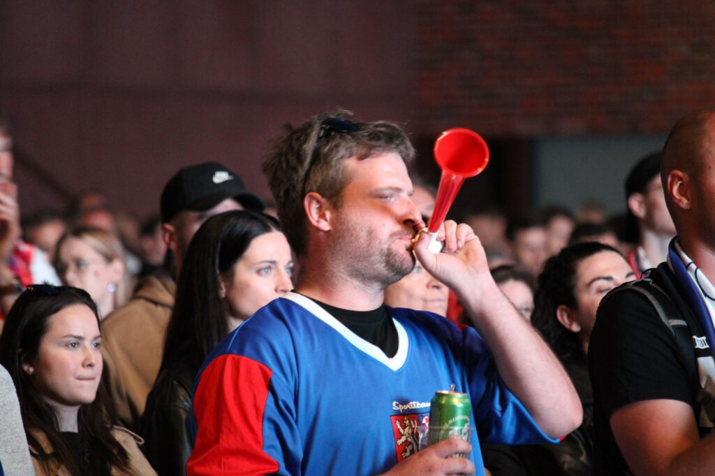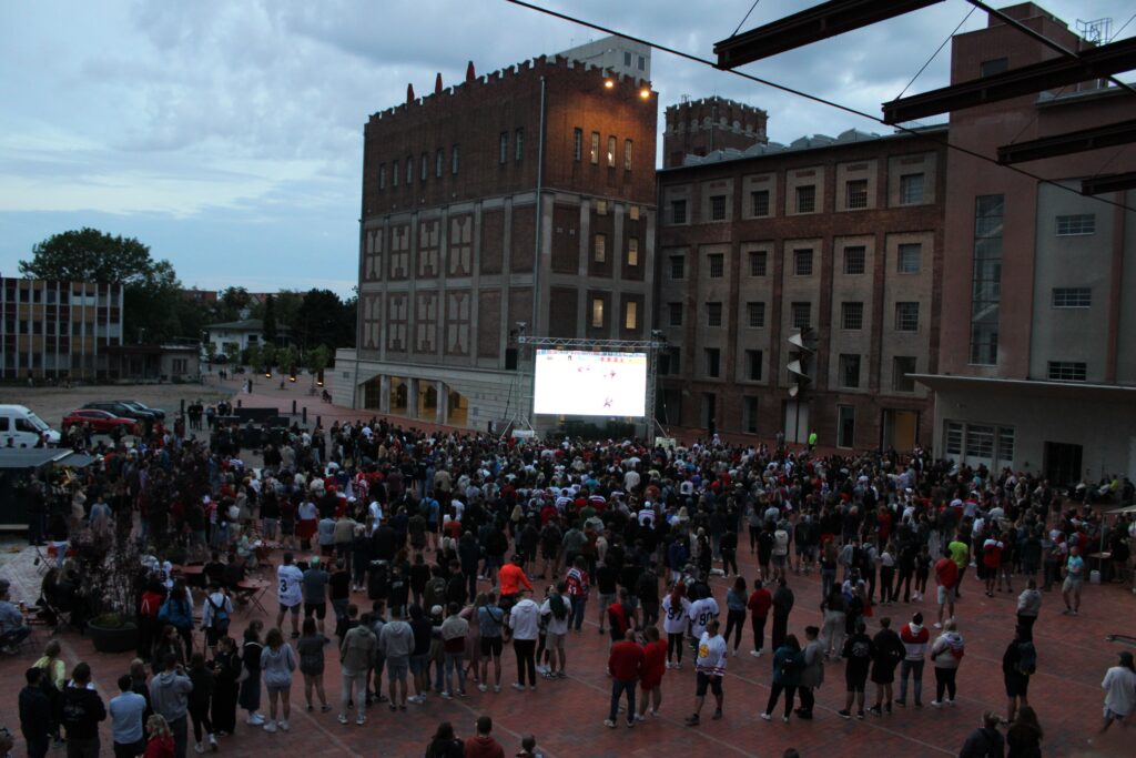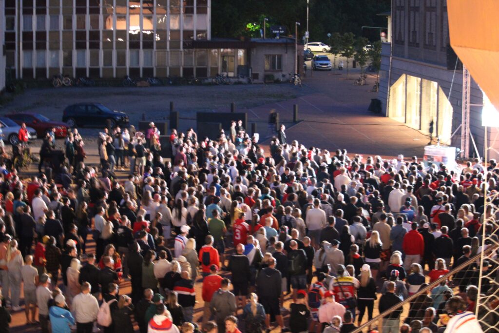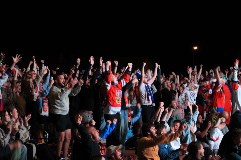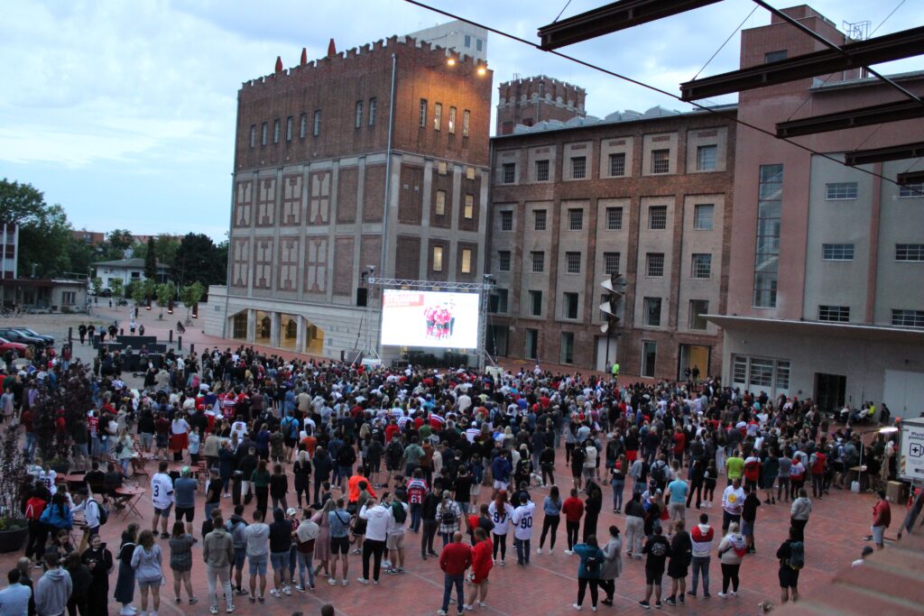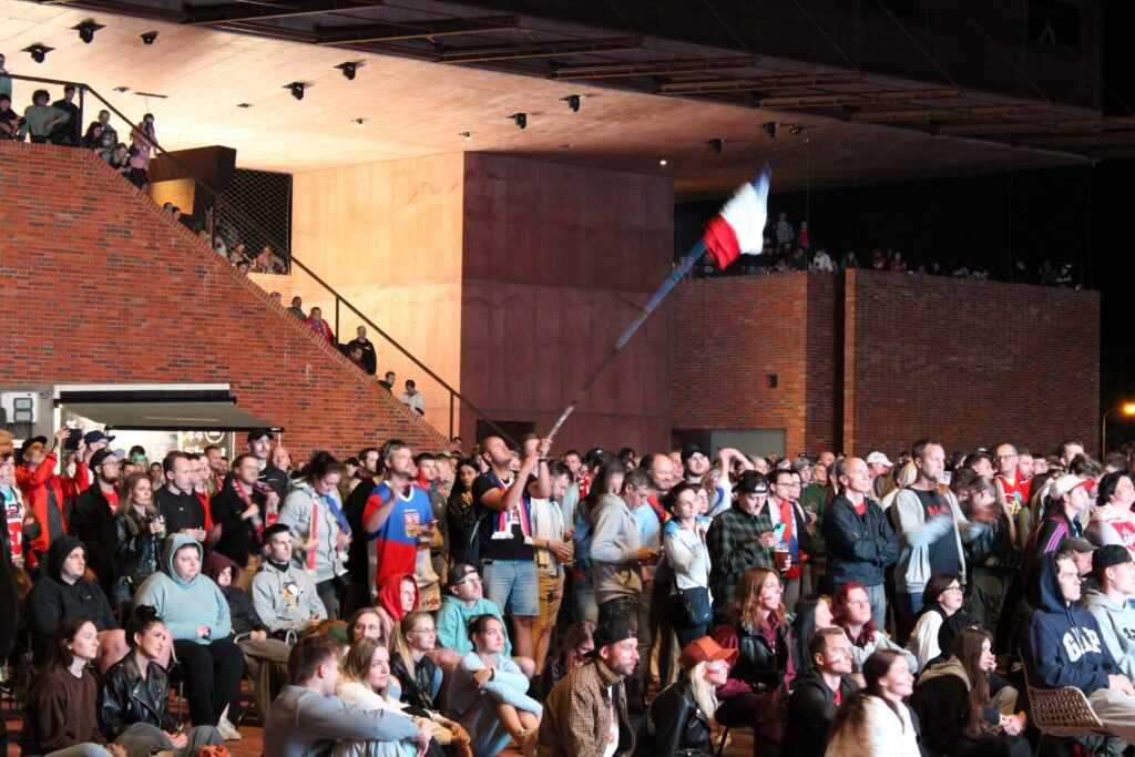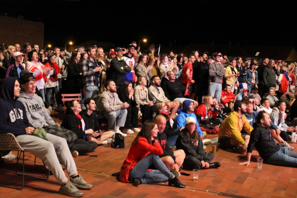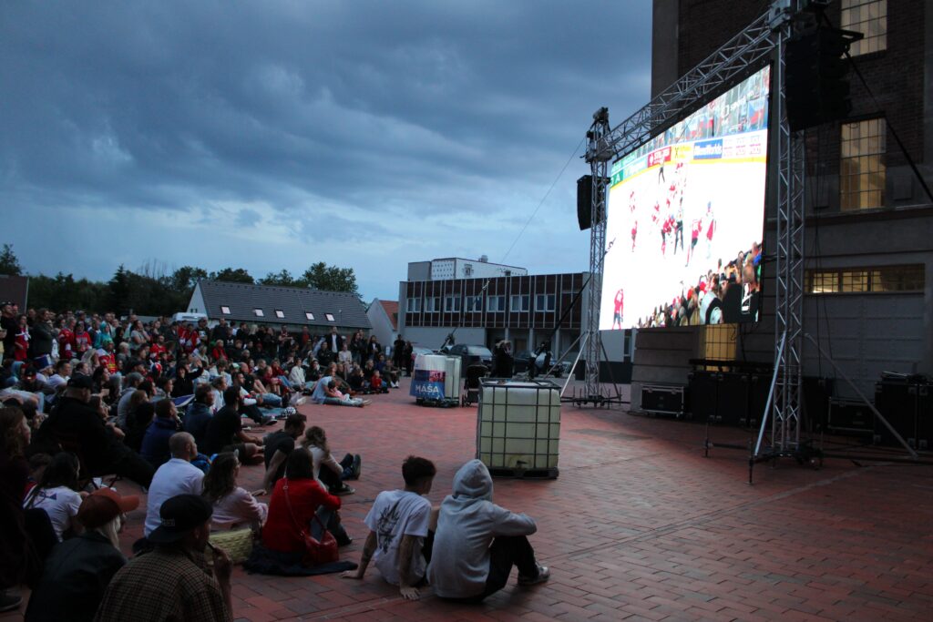 V Pardubicích se už před dvacátou hodinou zaplnil plac u Automatických mlýnů, kde se před velkoplošnou obrazovkou shromáždily stovky fanoušků, aby podpořily Český nároďák, a to se povedlo.