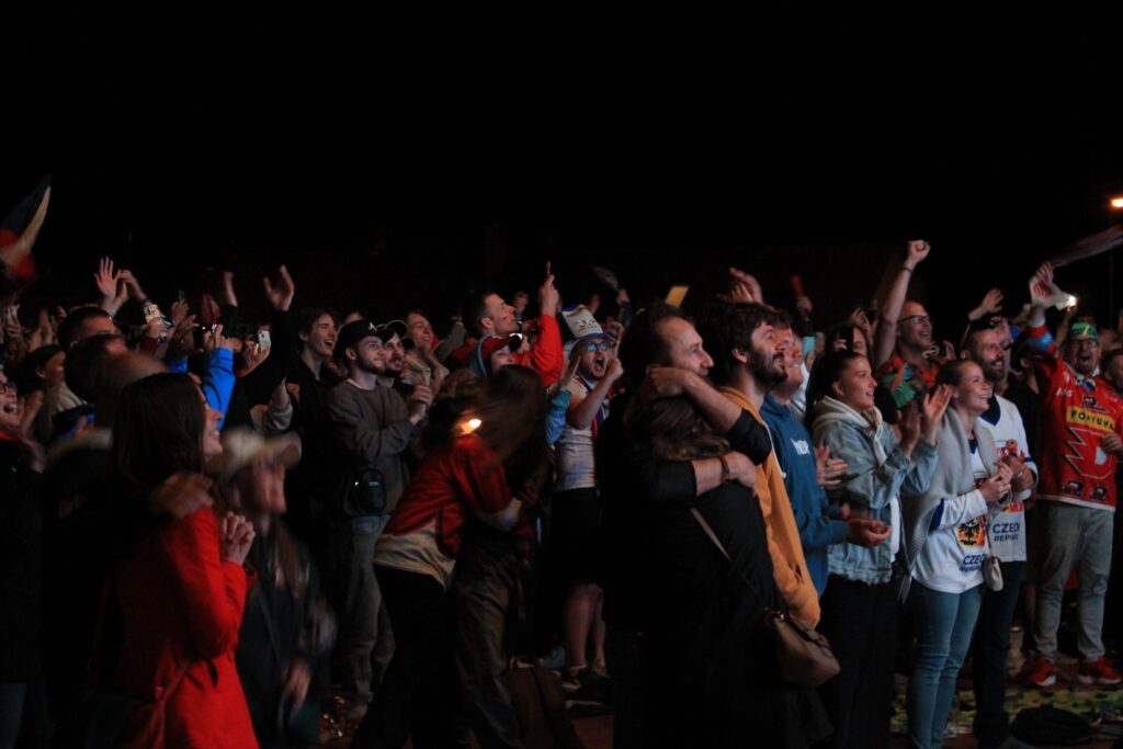 O první vítězný gól se postaral v 50. minutě David Pastrňák a v té 60. rozhodl Lukáš Dostál o konečném vítězství 2:0. Češi tak slaví, a to nejen v Pardubicích a Praze, ale i po celém Česku.