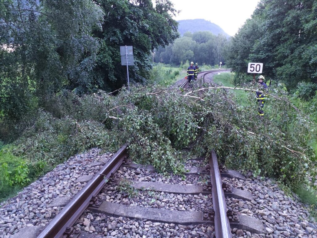 Strom spadlý na jedoucí vlak na železniční trati č. 010 ve Chvaleticích způsobil v podvečer zastavení vlaků na koridoru, který musel být zastaven v 16.52 hodin. Dva vlaky plné cestujících stály až do chvíle odstranění stromu. Ve vlaku směrem na Kolín cestovalo 490 osob, ve vlaku směrem na Pardubice bylo 185 cestujících.