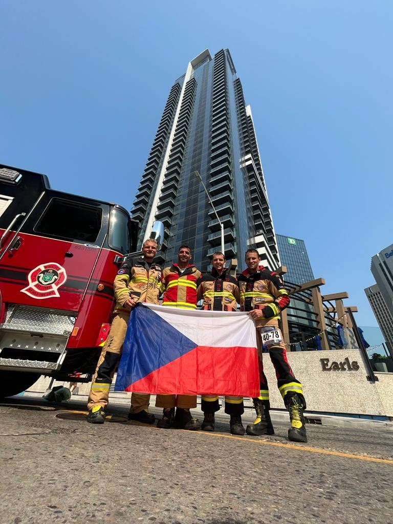 Tohle si nemůžeme nechat jen pro sebe. Právě jsme obdrželi informace z kanadského Winnipegu. Naši mistři už se chystají na cestu zpátky do Čech. Ale ještě předtím si střihli poslední závod v disciplínách TFA. A nebudete tomu věřit, v kategorii týmů vyhráli naši borci zlatou medaili. Tým ve složení Marek Víšek a Zdeněk Král (HZS Pardubického kraje) a Michal Brousil a David Kubiš (HZS Jihočeského kraje) pokořil nejvyšší budovu ve Winnipegu, která má 40 pater, to vše v kompletním zásahovém oděvu s aktivním dýchacím přístrojem.“ uvedla tisková mluvčí HZS Pardubického kraje Vendula Horáková.