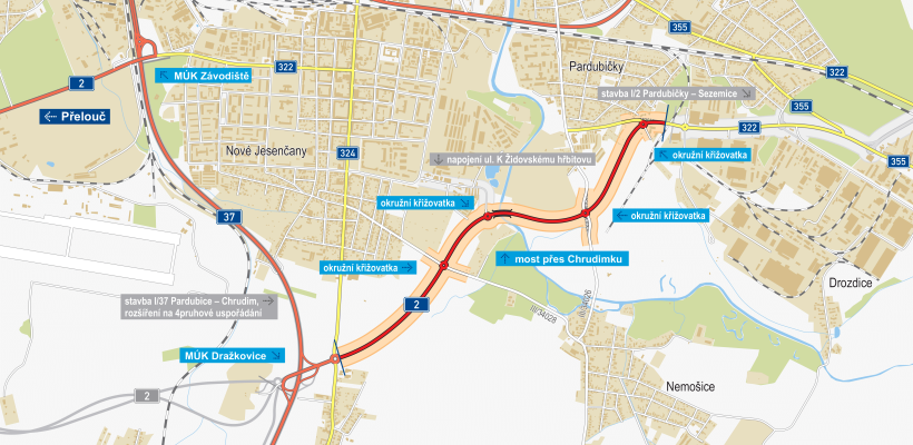 „Jihovýchodní obchvat povede od křižovatky v Dražkovicích až po okružní křižovatku v Pardubičkách. Vznikne celkem 3100 metrů nové silnice, včetně 10 mostů o celkové délce 218 metrů,“ přiblížil budoucí podobu obchvatu náměstek zodpovědný za dopravu Jan Hrabal.