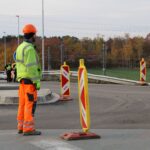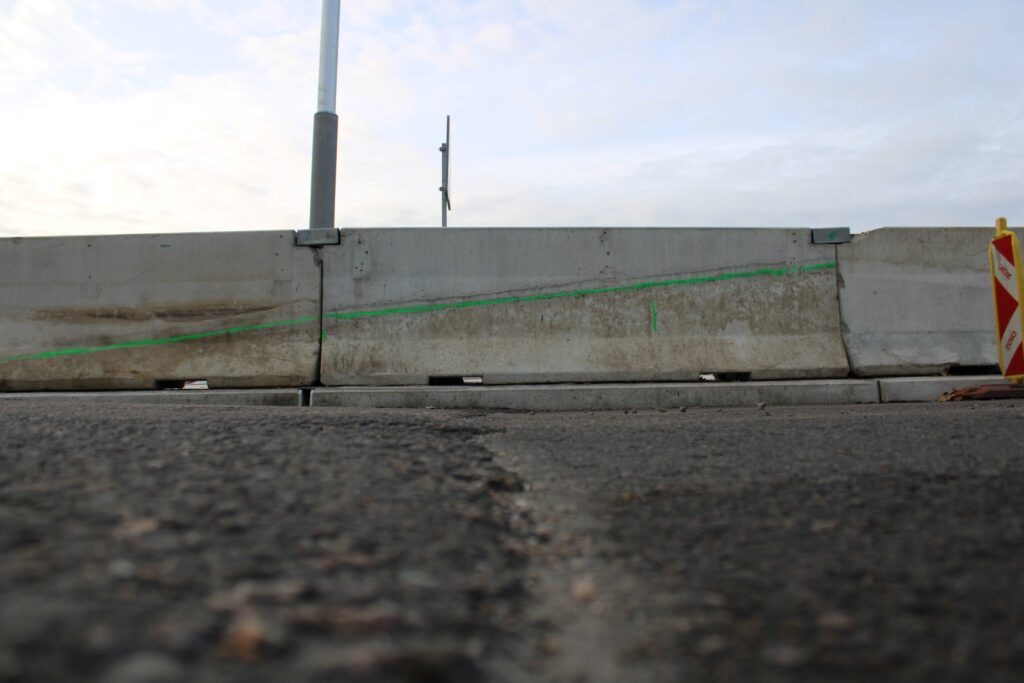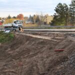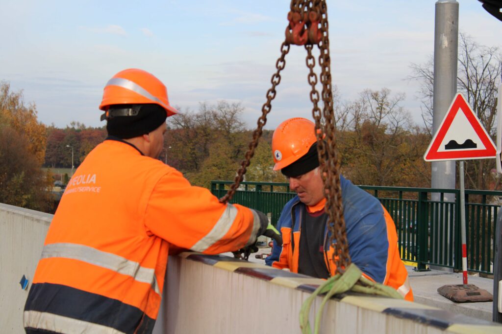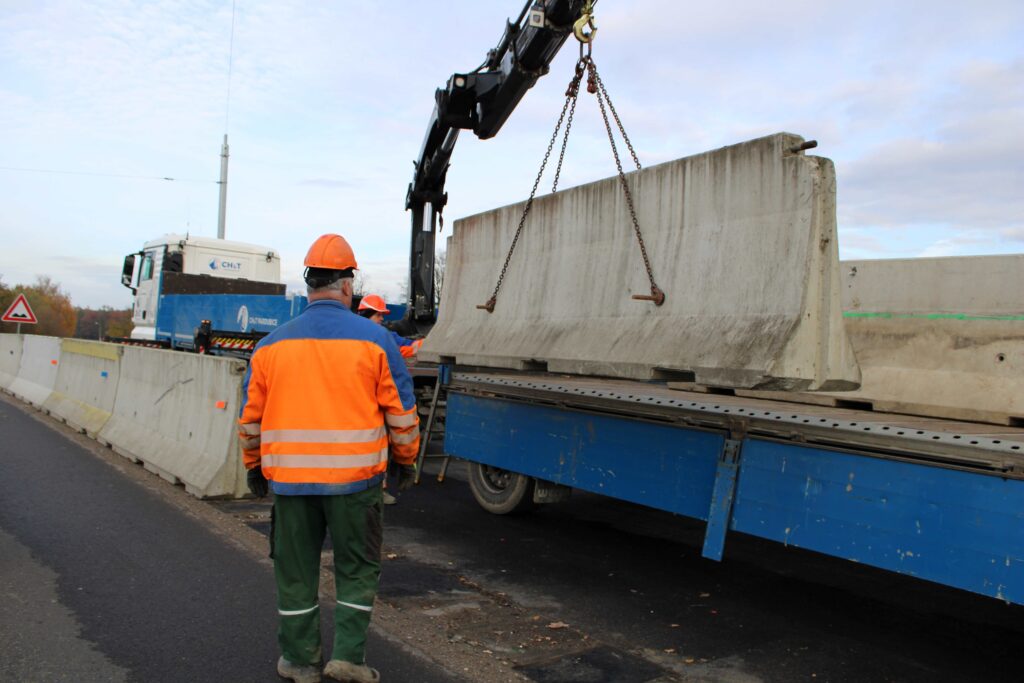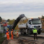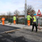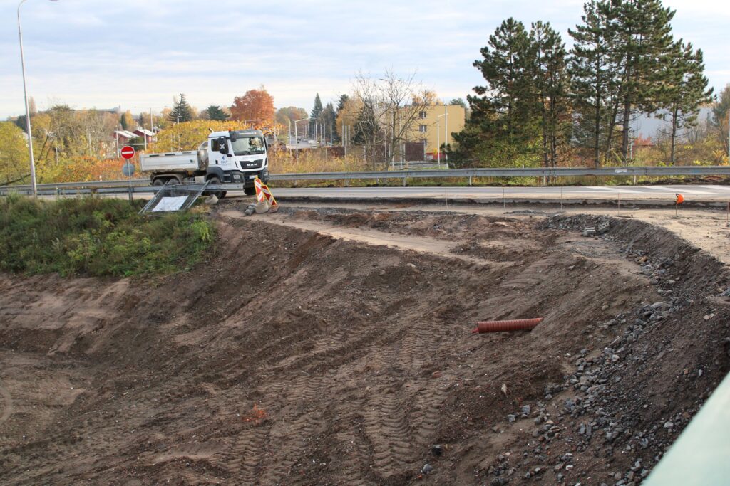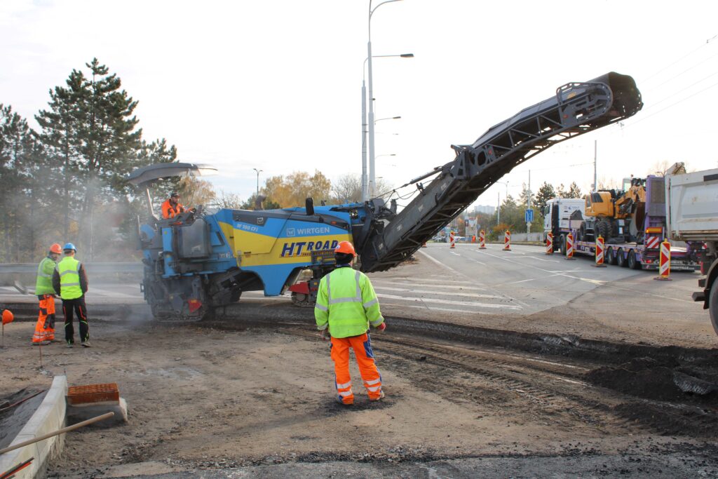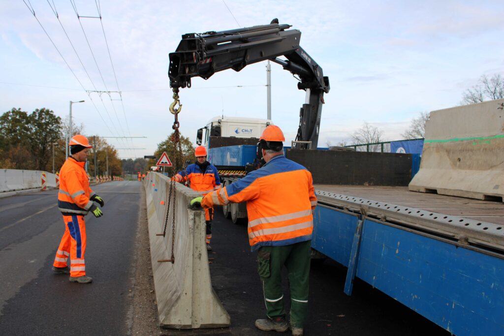 Na novém mostě v Pardubicích – Doubravicích v pondělí 13. listopadu stavbaři začali dokončovat napojení mostu na stávající silnici I/36. Silničáři tu frézují vozovku a následně budou instalovat sloupy trakčního vedení, zábradlí a svodidla. Řidiči tu tak musí počítat s komplikacemi.