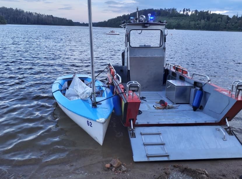 Trochu prochladlé ženě byl poskytnut vodními záchranáři tepelný komfort, a to pomocí termofolie. „My jsme poté převrátili plachetnici a dopravili ke břehu,“ říká velitel zásahu Jiří Myška ze stanice Seč. Pro upřesnění, plachetnice se převrátila v Čáslavské zátoce.