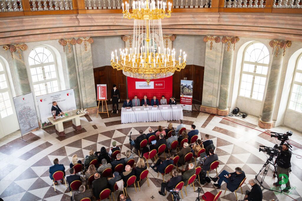 Ve čtvrtek 3. října se na zámku Karlova koruna v Chlumci nad Cidlinou dostala podobu startovní listina na již 134. ročník Velké pardubické se Slavia pojišťovnou. Letos tento legendární závod poběží šestnáct koní. Tem startovní čísla vylosovali operní pěvkyně Andrea Kalivodová s hrabětem Francescem Kinskym dal Borgo.