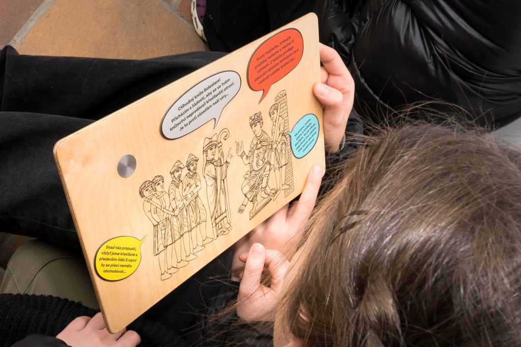 I přes omezený prostor se podařilo vytvořit interaktivní koutek pro nejmenší návštěvníky. Na speciálním stolku si mohou metodou frotáže překreslit historické mince jako tolar z 10. století nebo groš z 12. století. Sestavením dřevěných puzzlí pak děti samy vytvoří obraz těchto mincí. Na interaktivní dřevěné desce mohou zároveň vytvořit „rozhovor“ mezi sv. Vojtěchem a Boleslavem II. z 11. století, čímž se hravě seznámí s historickým kontextem a příběhem pokladu, jenž je uložen v trezorové místnosti.