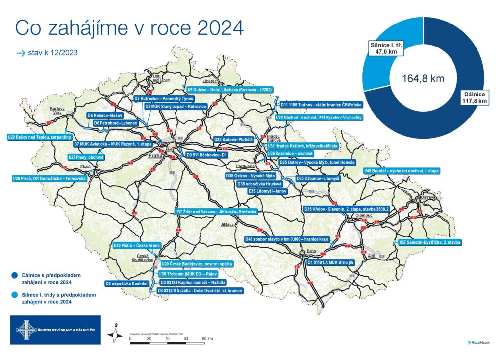 Třeba v Pardubickém kraji ŘSD v příštím roce zahájí výstavbu dalších úseků dálnice D35 u Vysokého Mýta a to včetně tunelu Homole a úseků poblíž Litomyšle. Další významnou stavbou bude vybudování přeložky silnice I/36 ( obchvat Sezemic ). „Na příští rok připravujeme zahájení řady staveb dálnic a silnic I. třídy po celé České republice. Převažují dálniční úseky, kam Pardubickém kraji spadají další úseky dálnice D35, na sil. I/36 obchvat Sezemic,“ uvedlo ŘSD na sociální síti X.