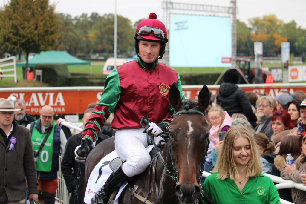 Kromě Sexy Lorda vepředu dobře pracoval i Cuwall (ž. Jakub Kocman) a také docela překvapivě High In The Sky (ž. Jan Faltejsek). Na Malém anglickém skoku přišla skokanská chyba Dumon Roclaye, k zemi se poroučel jeho žokej Marcel Novák. Na travnatý ovál zavedl koně Sexy Lord, pozici si lepšil High In The Sky, který začal tmavého hnědáka intenzivně jezdit a vzdalovat se soupeřům. Přesto byl někdo rychlejší. V cílové rovině ho přespurtoval Stumptown (ž. Keith Michael Donoghue). Z hloubi pole se k těm nejlepším přiblížil skvělým závěrem Čáryjape (ž. Adam Čmiel), který skutečně začaroval a doběhl si pro třetí místo. Čtvrtý skončil Cuwall, pátý Zarate (ž. James Best). Další dvě dotovaná místa obsadila Gentleman De Reve nově registrovaný pod americkou stájí (am. Teddy Davies), poslední dotaci pak bral Dulcar De Sivola (ž. Lukáš Matuský).