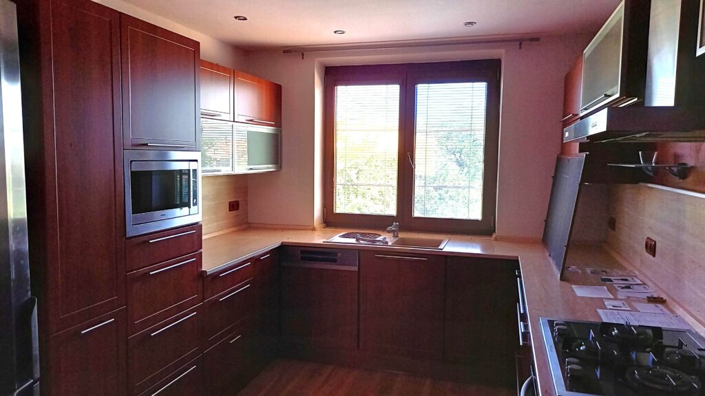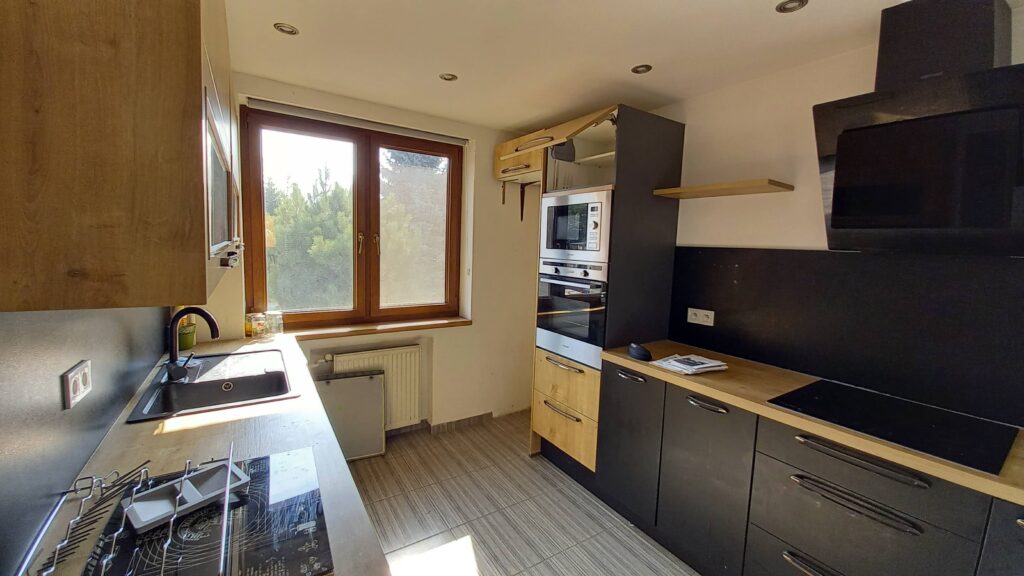 První z domů je dvoupodlažní stavba, která nabízí dvě samostatné bytové jednotky. Jedna jednotka je umístěna v přízemí a je navržena bezbariérově. Druhá jednotka má mezonetovou koncepci s prostorným podkrovím. Každá bytová jednotka má vlastní vstup i zázemí. Dům je podsklepený. K nemovitosti náleží zahrada s pergolou a garáží. Objekt se nachází v těsné blízkosti lesa, což poskytuje možnost aktivního trávení volného času venku.
