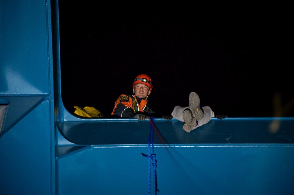 Zachraňovali jsme osobu z výšky. Osoba se vyšplhala na mostní oblouk nad trakční vedení na železniční trati. Okolo projíždějící řidič si osoby všiml a zavolal na tísňovou linku 112. Krajské operační a informační středisko HZS Pardubického kraje ihned na místo vyslalo jednotku hasičů s lezeckou skupinou.
