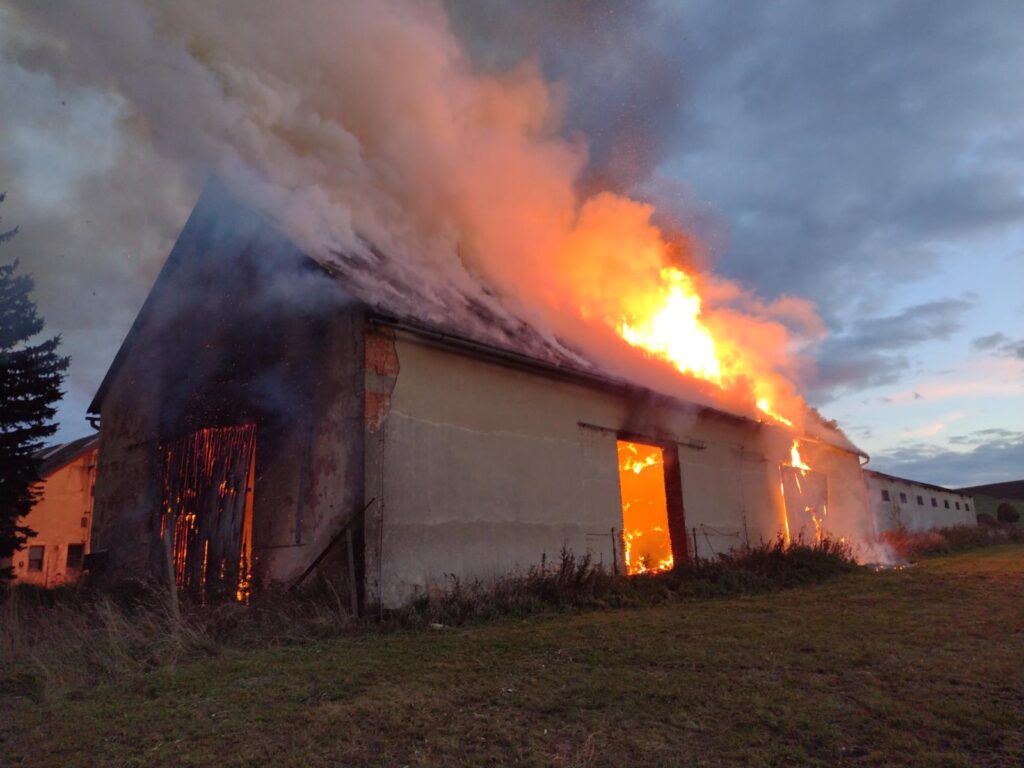 Stavba o rozloze zhruba 40 x 15 m byla volně přístupná, bez dveří a opuštěná. Zděný objekt byl plný naskladněných balíků slámy. Hasiči se rozdělili do dvou úseků. Požár se podařilo hasičům dostat pod kontrolu v 18.23 hodin. Majitel objektu na místo zajistil nakladač pro vyvážení balíků.