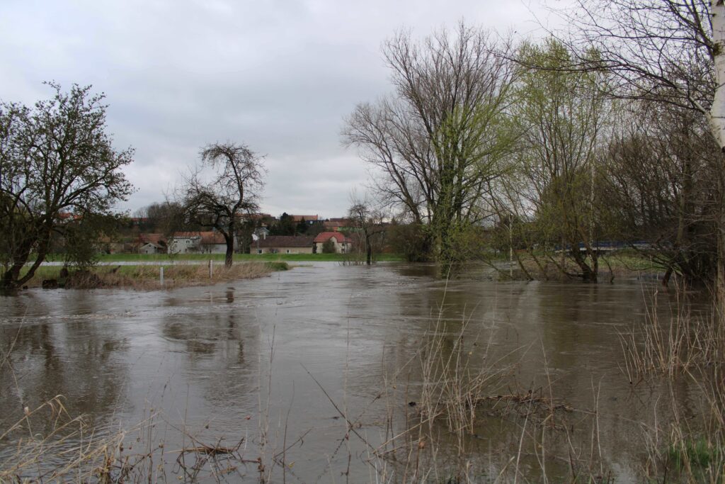 Je zasaženo okolí mezi obcemi Úhřeticemi, Dvakačovicemi a Vejvanovicemi. Na okraji Úhřetic si hasiči vybudovali zázemí a museli zde zavřít zpětnou klapku do kanalizace, aby nedošlo k zatopení okolních domů. Přilehlé louky a pole jsou zatopené. Mezi Dvakačovicemi a Vejvanovicemi se vytvořil proud vody, který vozovku částečně zaplavil. Silnice je v tuto chvíli uzavřena, ovšem i tady začíná řeka kulminovat.