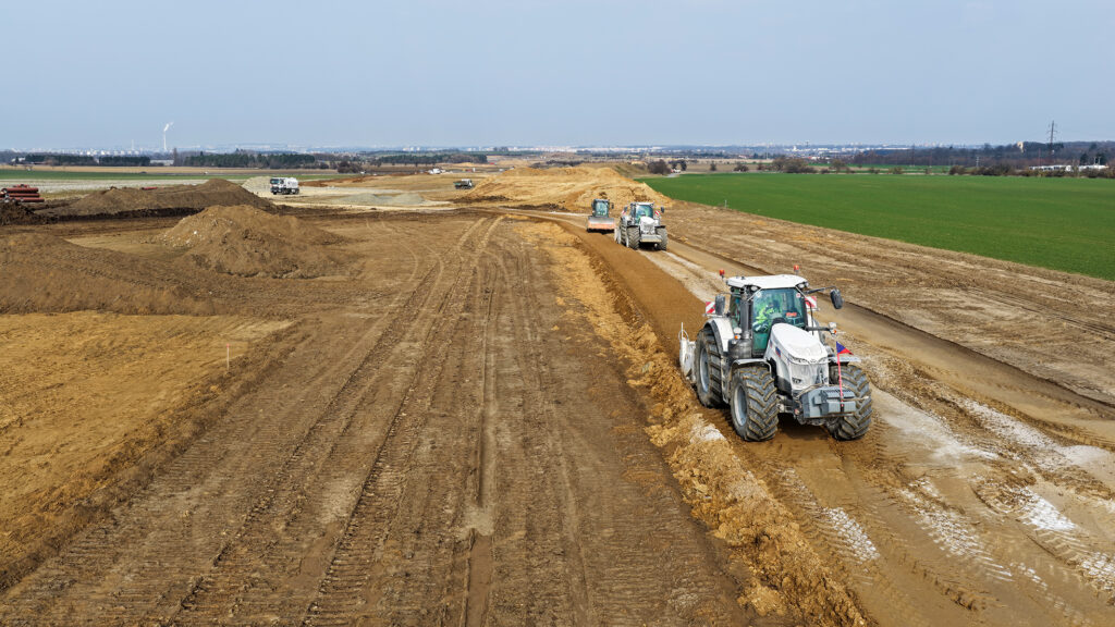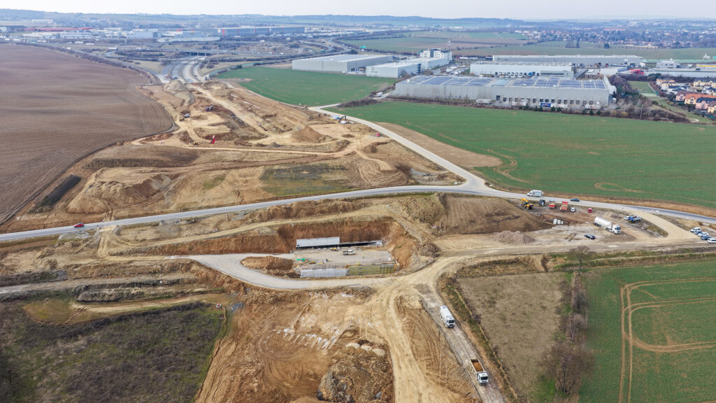 Na stavbě v celé délce trasy pokračují rozsáhlé zemní práce. Dělníci budují násypy zemních valů, provádějí výkopy pro odvodňovací systém a připravují podloží budoucího dálničního tělesa. Součástí prací jsou také návozy štěrkodrtě a úpravy terénu, které mají zajistit stabilitu komunikace a bezpečný provoz.