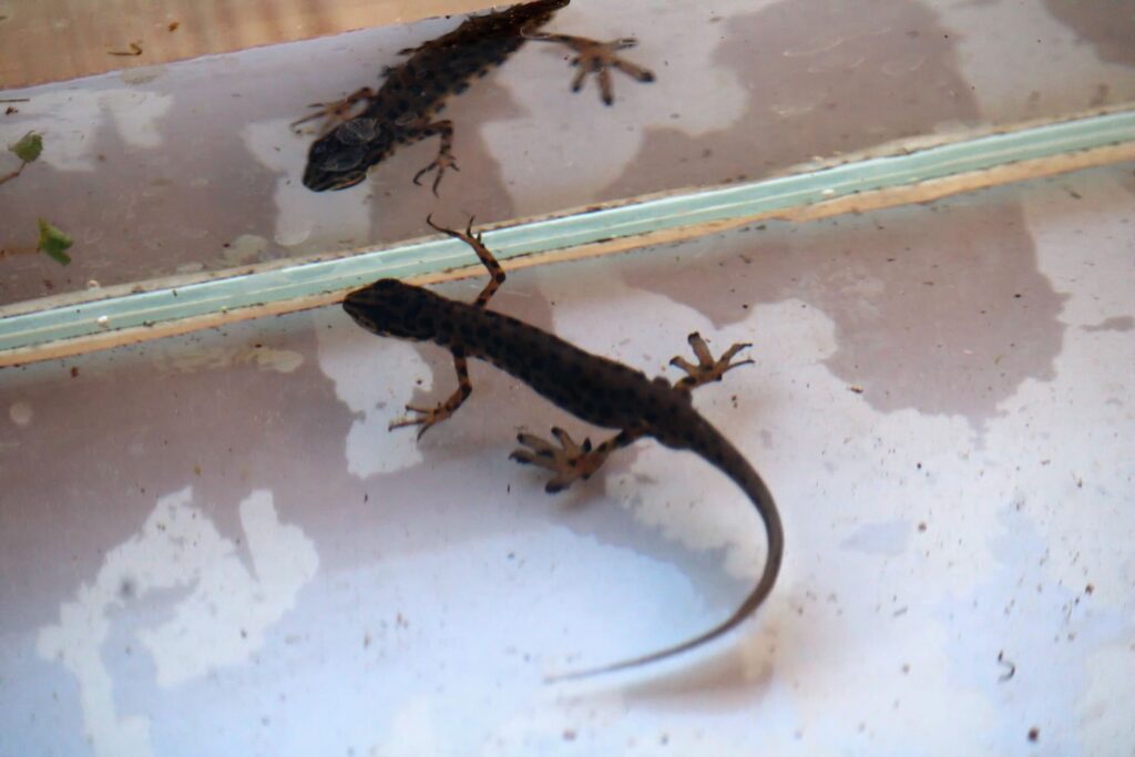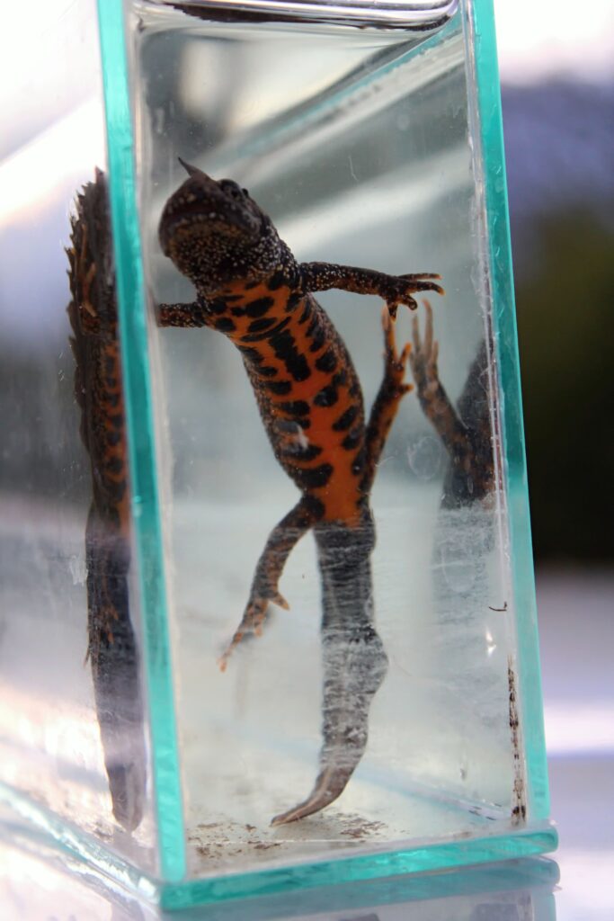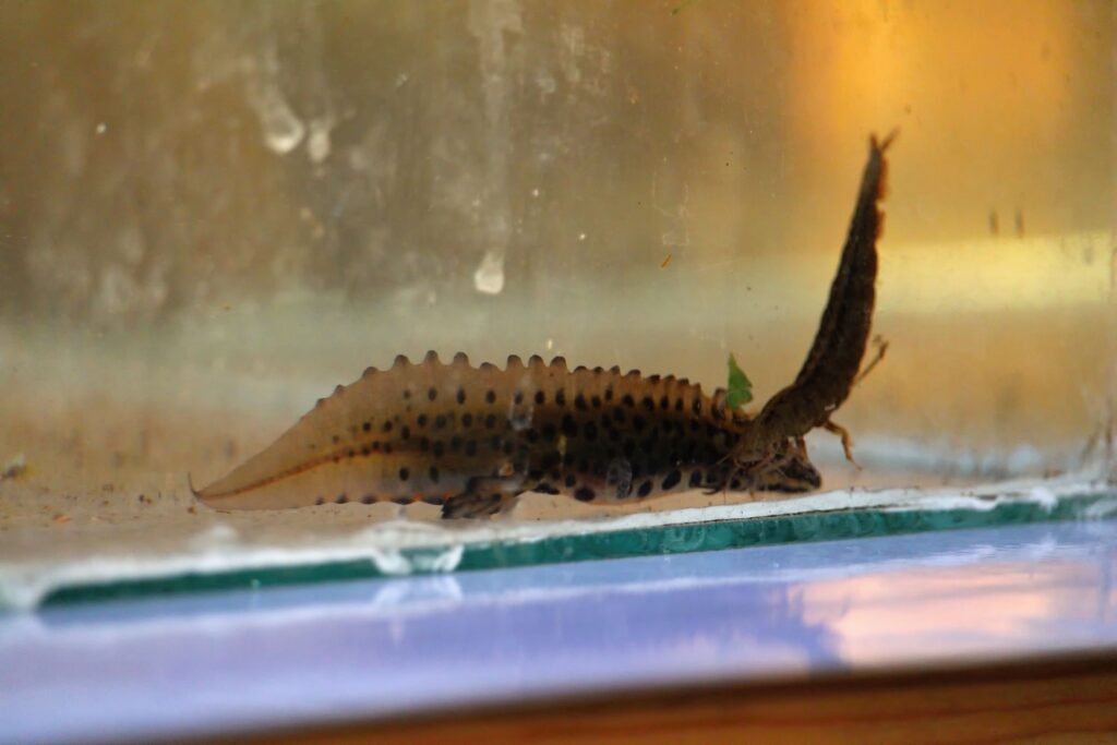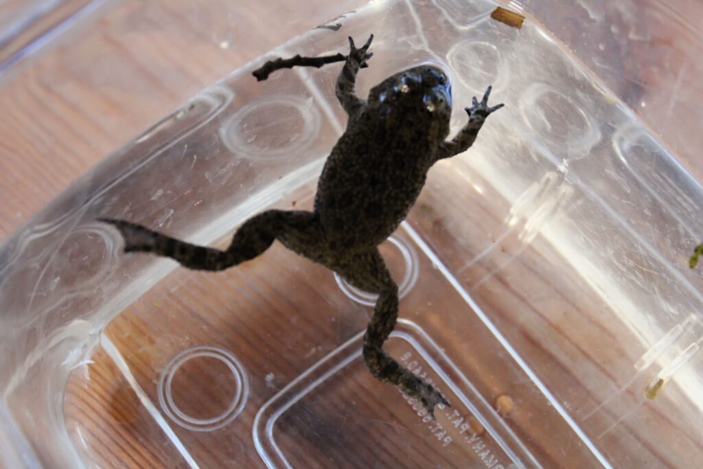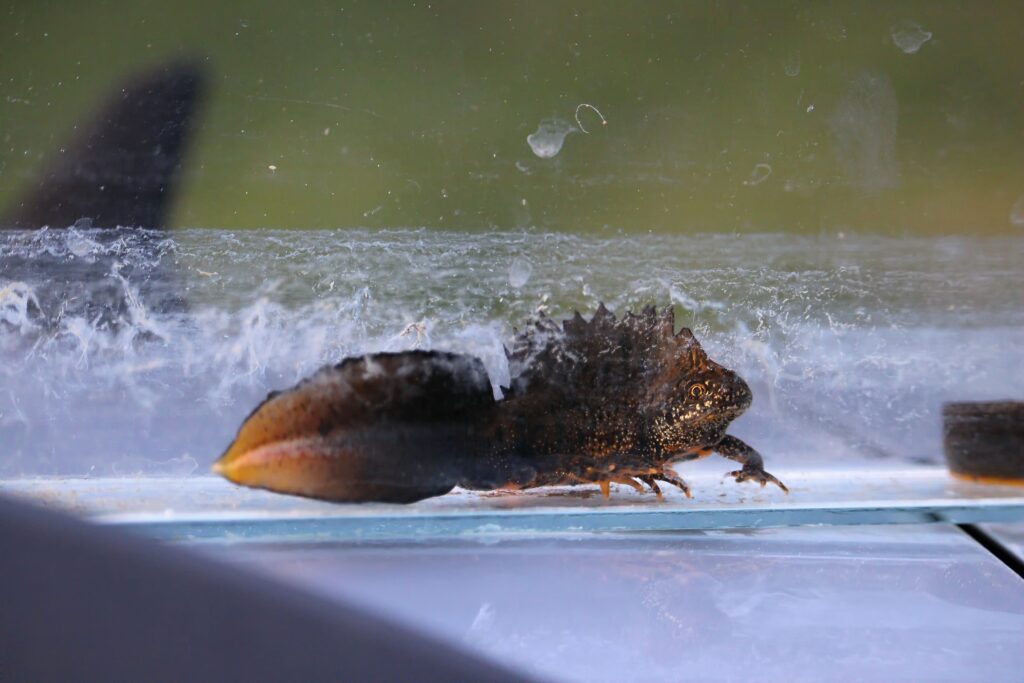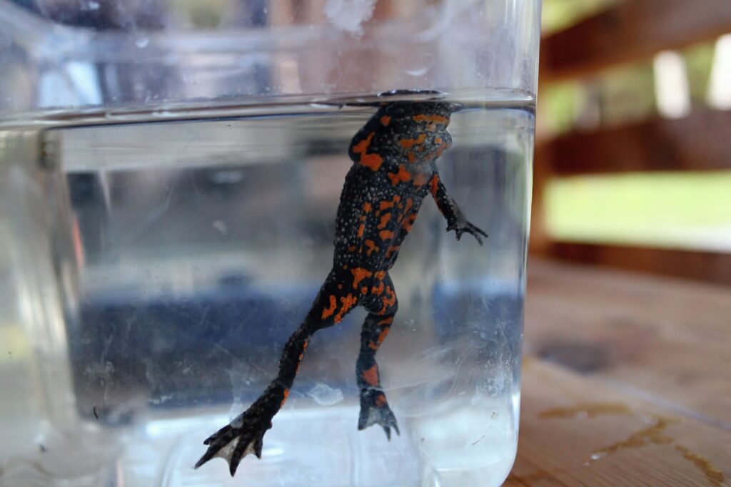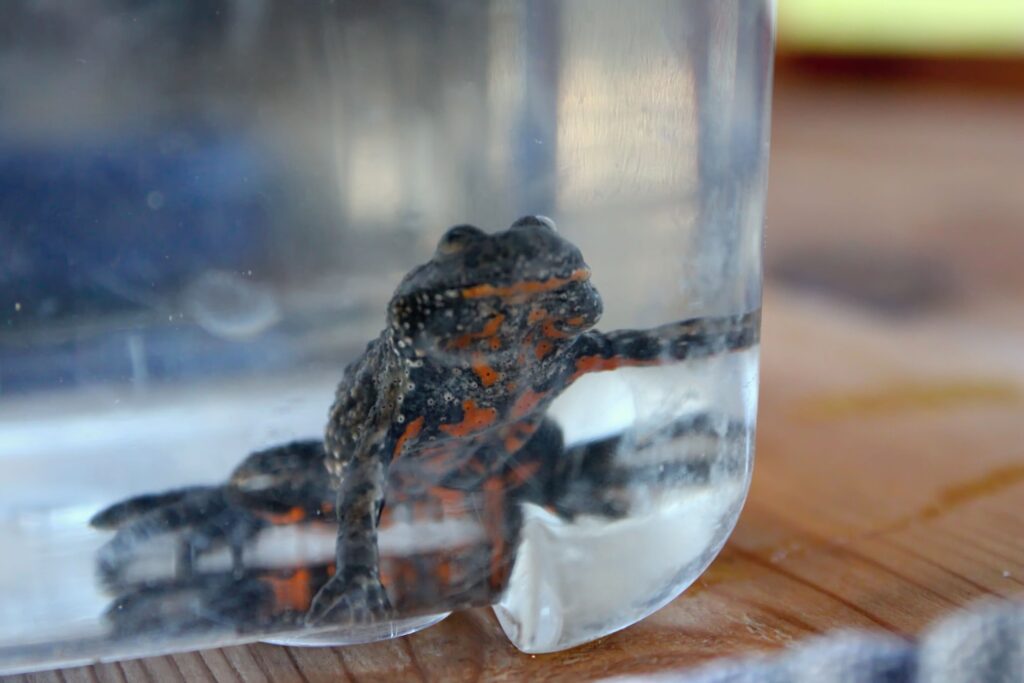 „Tady je to kuňka ohnivá nebo obecná, to je druh relativně drobné žabky, co má charakteristicky oranžové bříško, respektive takové mapičky a každá je má jedinečné a dalším druhem je čolek velký,“ prozradil specialista práce s veřejností AOPK ČR Petr Pěchula.