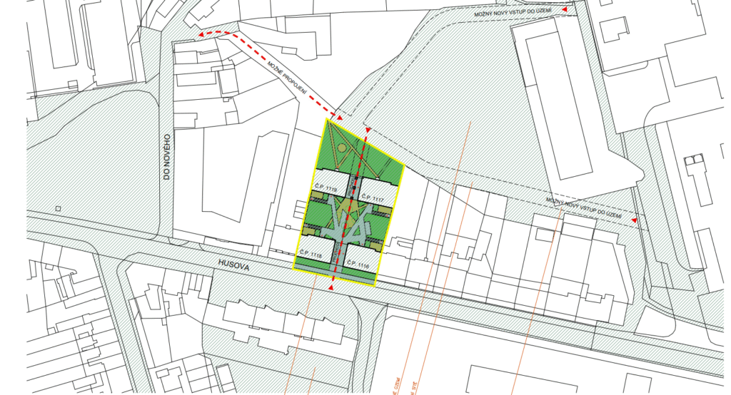 Plánovaná proměna celé lokality s bytovými domy by měla zahrnovat také výstavbu nových objektů za stávajícími bytovými domy. Tato výstavba je podmíněna schválením nového územního plánu.