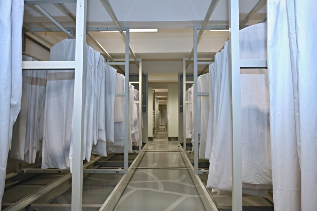 Přemístěním artefaktů však proces stěhování nekončí – ochranné plátěné obaly se postupně vyměňují za nové, které procházejí procesem odkyselení, aby byly k textiliím šetrnější. Přesun části sbírky do Ohrazenic uvolnil prostor v depozitáři textilu ve věži pardubického zámku. Díky tomu je nyní možné předměty lépe rozmístit a zlepšit jejich uložení.