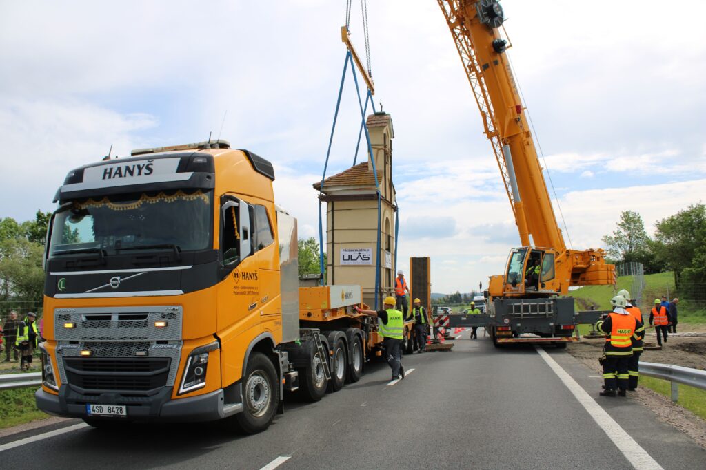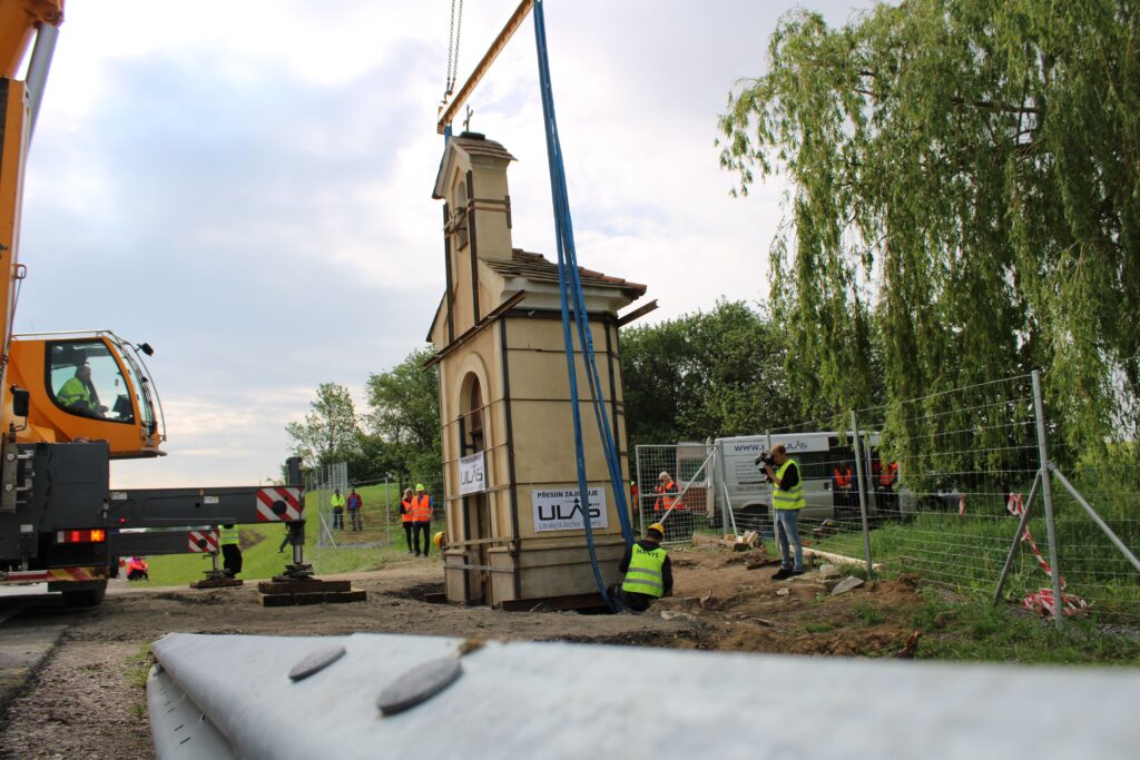 „Nejdřív se musí odstranit stávající základ, nahradit se ocelovou konstrukcí, to jsou ty dva nosníky. Tehdy, když jsme oddělili tu kapli od toho základu, tak došlo k tomu, že jsme svazovali jako celek. V momentě, kdy se ustaví jeřáb do své pozice, tak dojde k zavěšení lan nebo řetězů toho jeřábu a následně bude kaple přizvednuta. Za jeřábem stojí podval, na který se to umístí a pak když se nám to všechno povede, tak bude přemístěna na nové místo,“ Infu z Chrudimska Pardubicka řekl jednatel společnosti ULAS René Růžička.