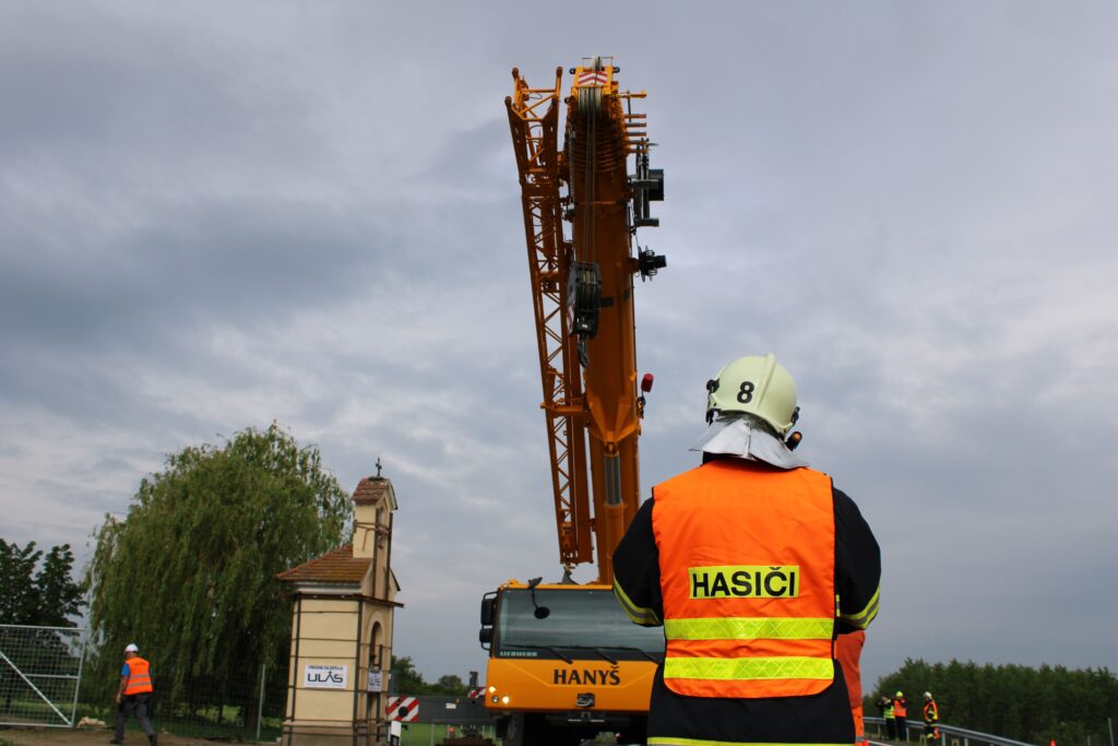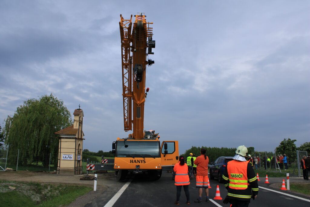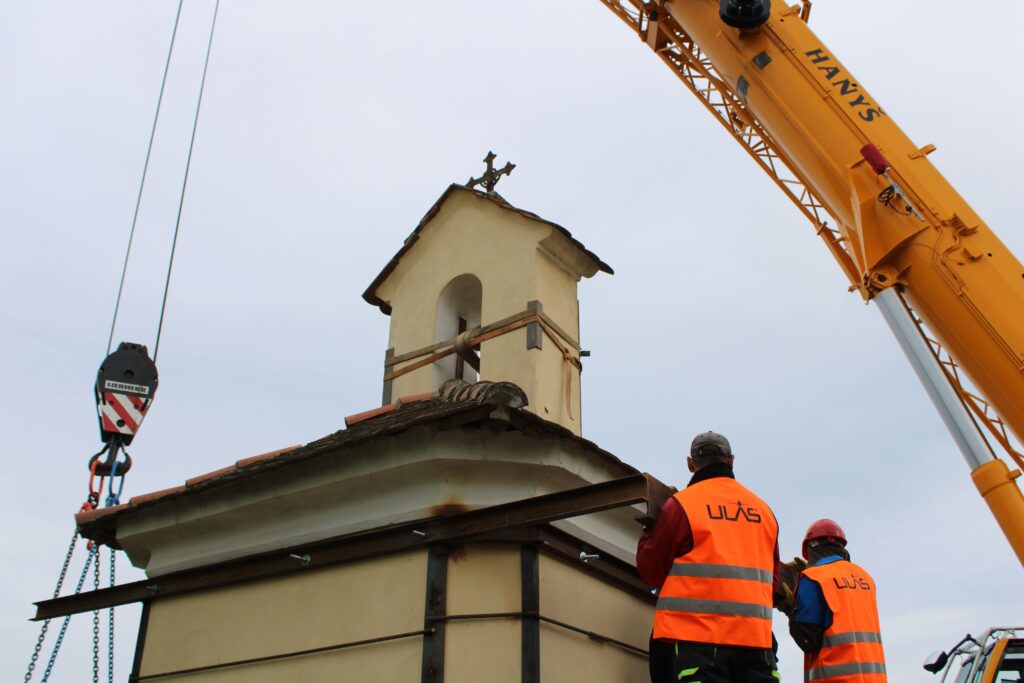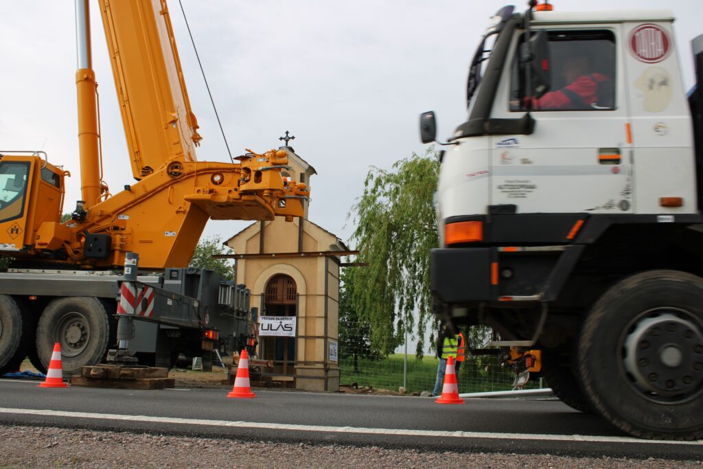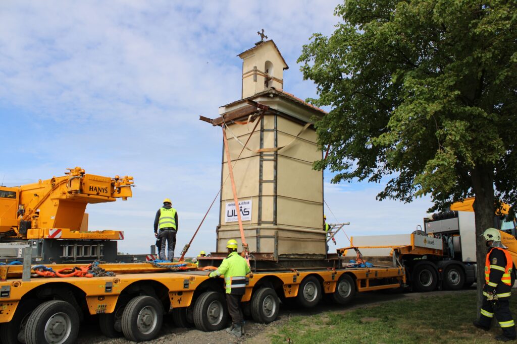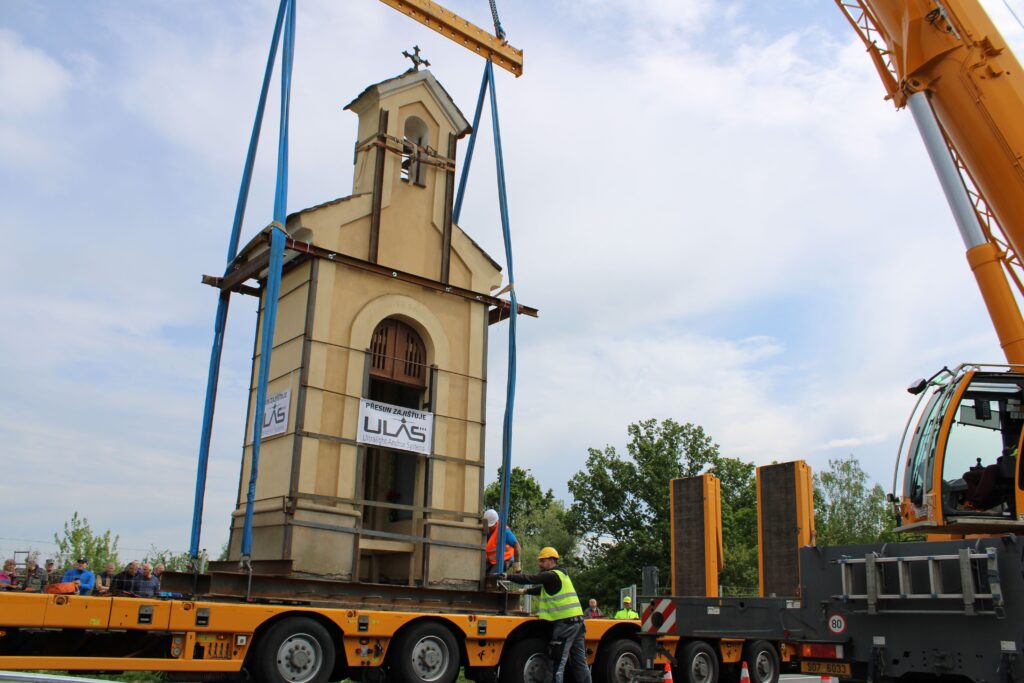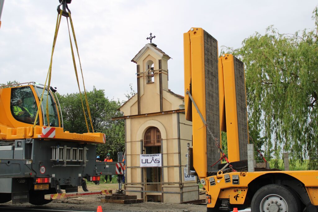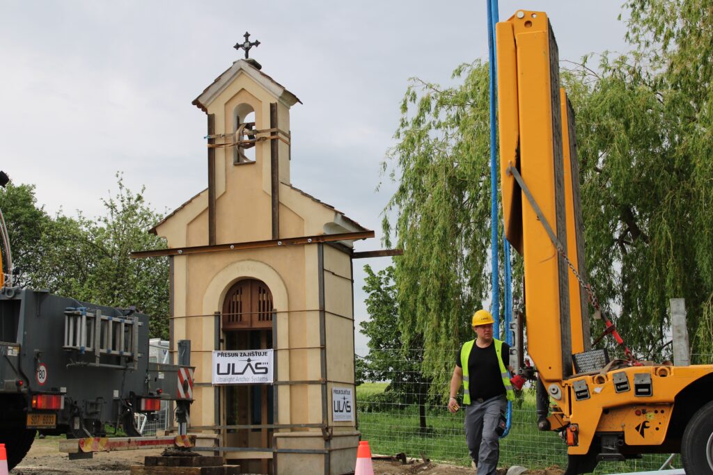 „Nejdřív se musí odstranit stávající základ, nahradit se ocelovou konstrukcí, to jsou ty dva nosníky. Tehdy, když jsme oddělili tu kapli od toho základu, tak došlo k tomu, že jsme svazovali jako celek. V momentě, kdy se ustaví jeřáb do své pozice, tak dojde k zavěšení lan nebo řetězů toho jeřábu a následně bude kaple přizvednuta. Za jeřábem stojí podval, na který se to umístí a pak když se nám to všechno povede, tak bude přemístěna na nové místo,“ Infu z Chrudimska Pardubicka řekl jednatel společnosti ULAS René Růžička.