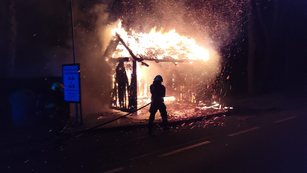 U Rváčova hořelo. Z autobusové zastávky zůstala jen kostra