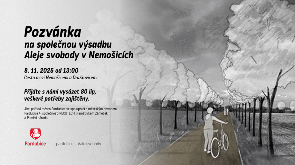 V Pardubicích bude založena nová Alej svobody, kterou vytvoří osmdesát lip malolistých symbolizujících 80. výročí ukončení druhé světové války. Slavnostní výsadba proběhne v sobotu 8. listopadu od 13:00 hodin na městských pozemcích mezi Nemošicemi a Dražkovicemi. K účasti na výsadbě jsou zváni pamětníci, školy, spolky, Skauti, Sokoli, stejně jako rodiny a jednotlivci z široké veřejnosti.