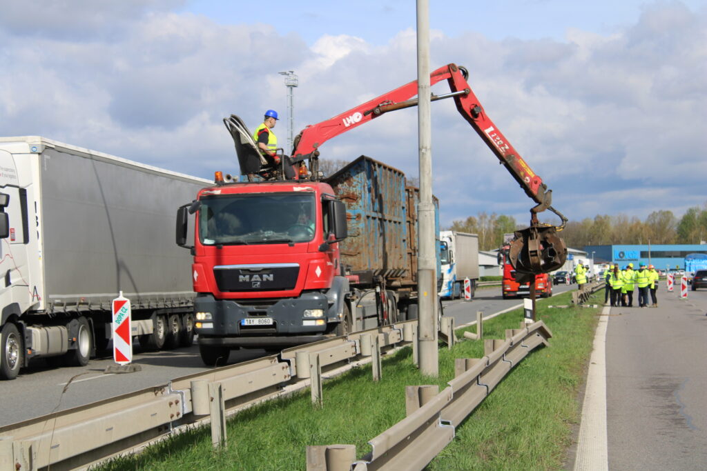 Od ranních hodin byl provoz omezen do režimu 1+1 a stavbaři začali s demontáží středových svodidel. „Tento asfalt tady položený je již šestnáct let starý a na základě průzkumu jsme dospěli, že je zapotřebí provést celkovou výměnu. Bude odfrézováno 17 milimetrů a položeno zpět bude 20 milimetrů, takže niveleta vozovky bude navýšena o 3 centimetry,“ potvrdila zástupkyně ŘSD.