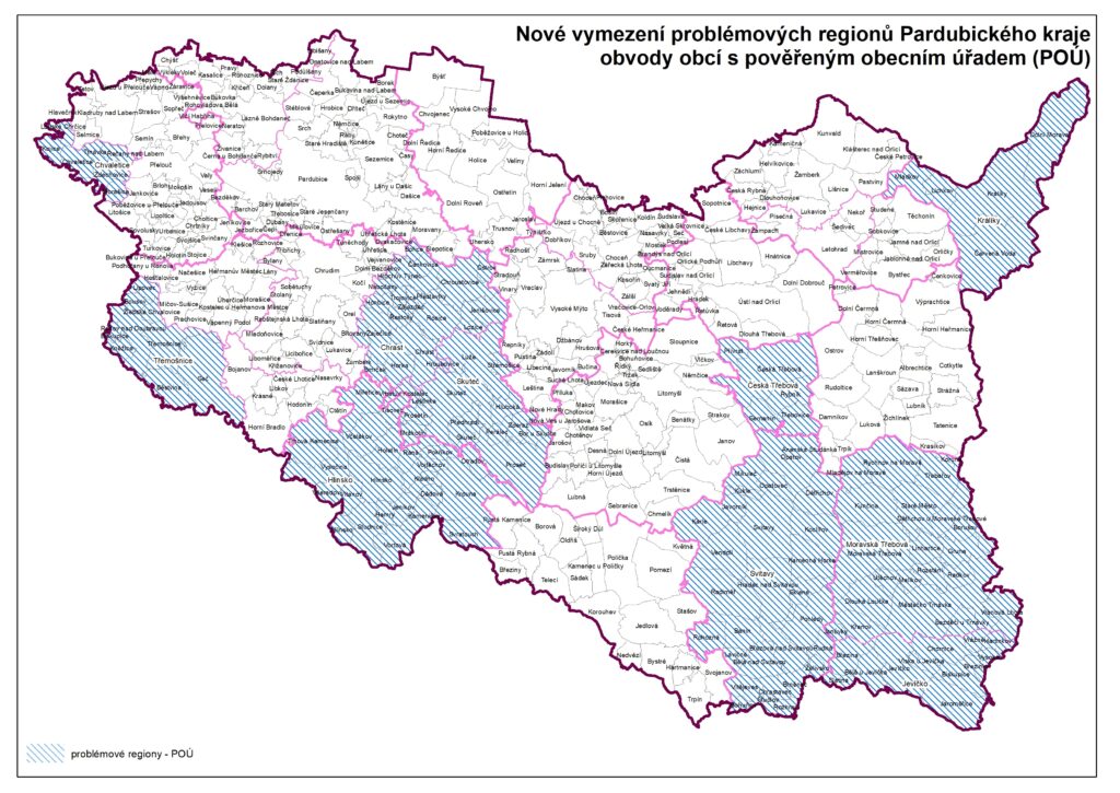 Pardubický kraj nyní také upravuje Strategii rozvoje Pardubického kraje 2021-2027. „V tomto dokumentu jsou vymezeny problémové obce, problémové obvody obcí s pověřeným obecním úřadem (POÚ) a problémové obvody obcí s rozšířenou působností (ORP). Chceme se více zaměřit na podporu skutečně klíčových a strategických projektů. Také jsme zjistili, že monitorování území pouze přes ORP nedává ten správný obraz o situaci v některých místech kraje. Proto jsme aktualizovali Strategii rozvoje, kdy vypouštíme kategorii problémových obcí a nově vymezujeme problémové POÚ“ uvedl hejtman Pardubického kraje Martin Netolický a pokračoval: „Pro nově vyhlašované dotační programy jimi budou POÚ Česká Třebová, Moravská Třebová, Svitavy, Králíky, Hlinsko, Jevíčko, Chvaletice, Třemošnice, Chrast a Skuteč.“