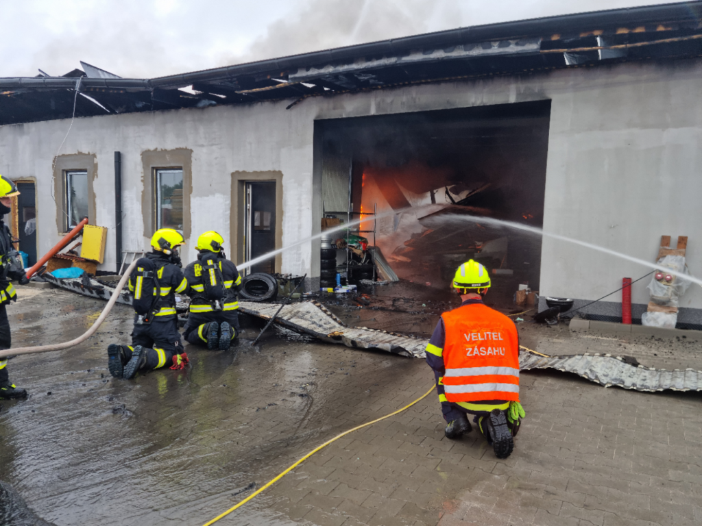 Ve Starém Mateřově na Pardubicku hořel pneuservis, lidé neměli větrat ani zbytečně vycházet