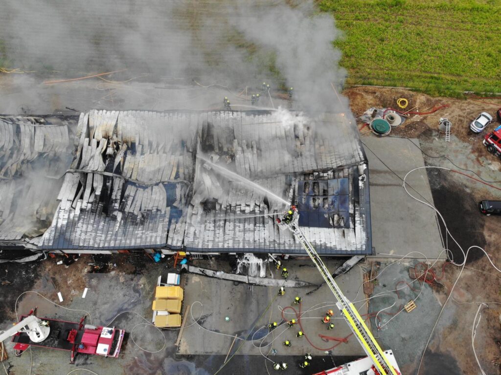 Škoda byla předběžně vyčíslena na 11,5 milionů korun. Při požáru nedošlo ke zranění osob.“