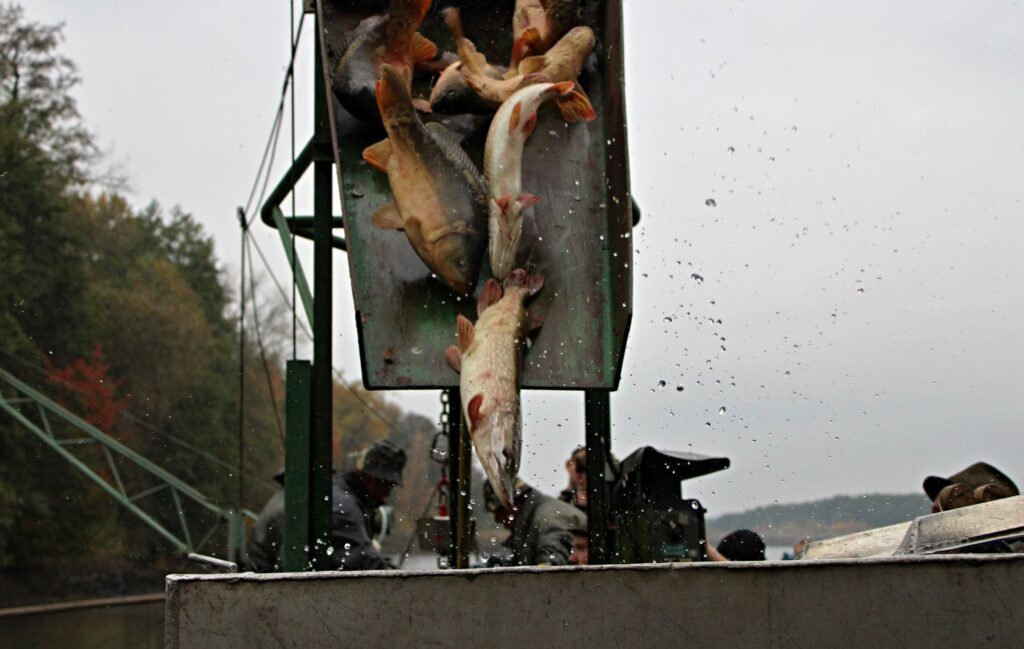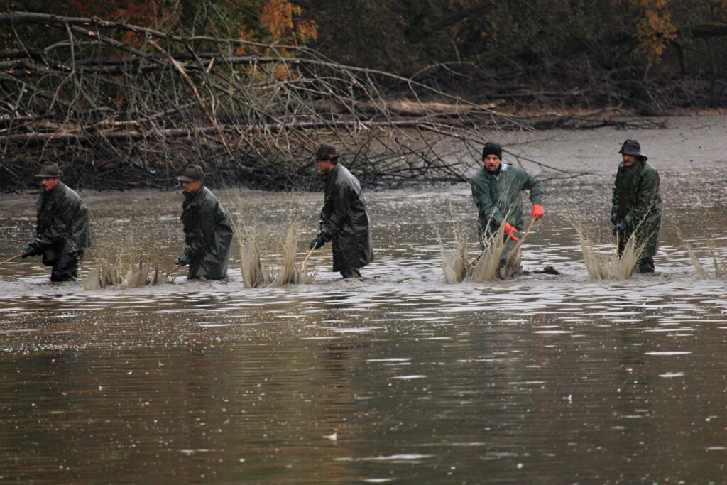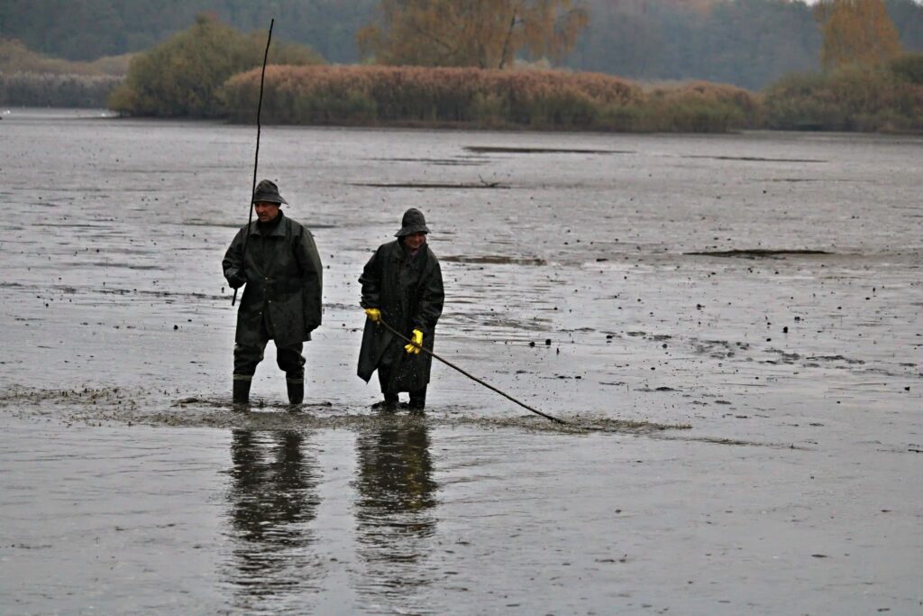 „Máme od sedmi hodin od rána scháňku ryb na podložní síť, která probíhala trošku později než v minulých letech, protože máme dneska teplo a těm rybám se úplně na tu podložku nechce. Rybáři pak zvedali podložní síť zjadřili jí na lodě, které daly na tu hladinu a teďka se pomalinku začíná připravovat vydávání ryb ze sítě na stůl a bude docházet k třídění ryb. Ryby se potom budou odvážet na sádky,“ Infu z Chrudimska Pardubicka prozradil jednatel z Rybničního hospodářství Lázně Bohdaneč Adolf Vondrka.