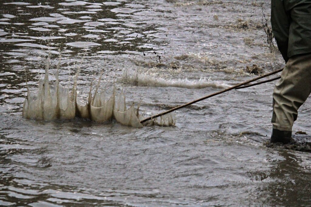 Ve východních Čechách se používá nejčastěji lovení přes podložní sítě. „Tady se loví takzvaně na podložní síť, to znamená, že my dáme před samotným výlovem na dno loviště velikou obdélníkovou síť, která se přichytne po obvodech železnými pruty, říkáme tomu kliky. V den samotného výlovu potom rybáři jdou plašit ryby a plaší je směrem na tu odložení síť. Je to jiný způsob lovení, než vidíte třeba na jihočeských rybnících, kde se takzvaně loví do velké zátahové sítě, do nevodů, kde potřebujete velké množství lidí po obou stranách sítě, kteří přitahují tu velikou síť s jádrem do loviště. Tento způsob je typický tady pro Pardubicko nebo obecně pro východní Čechy, kde jsou ty rybníky spíše mělčí. My používáme tento způsob, který může být i pro ty ryby trochu šetrnější,“ dále zmínil Vondrka.