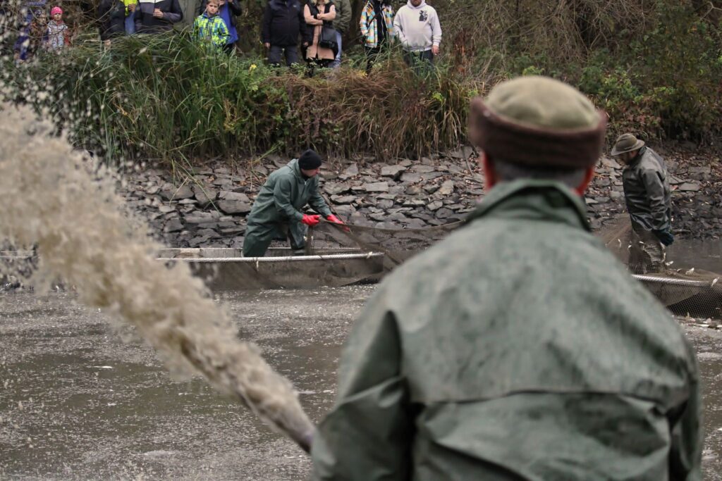 Lidé se přišli na tradiční výlov Bohdanečského rybníka nejen podívat, ale i zakoupit si nějakého toho kapříka. „Syn má rád ryby, je to rybář, já jsem taky rybář, tak jsme se chtěli podívat, jak vypadá výlov. Takže jsme se vyrazili podívat, aby viděl, jak to vypadá před tím, než se to dostane do těch řek, aby viděl, jak to vypadá, než se to dostane na talíř,“ svěřil se jeden z návštěvníků akce.