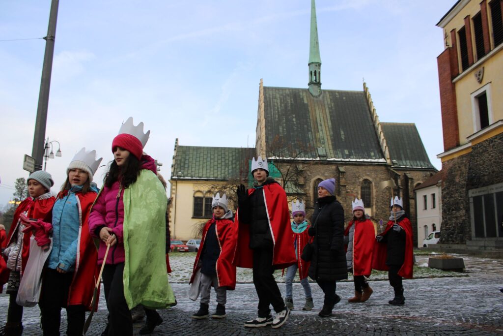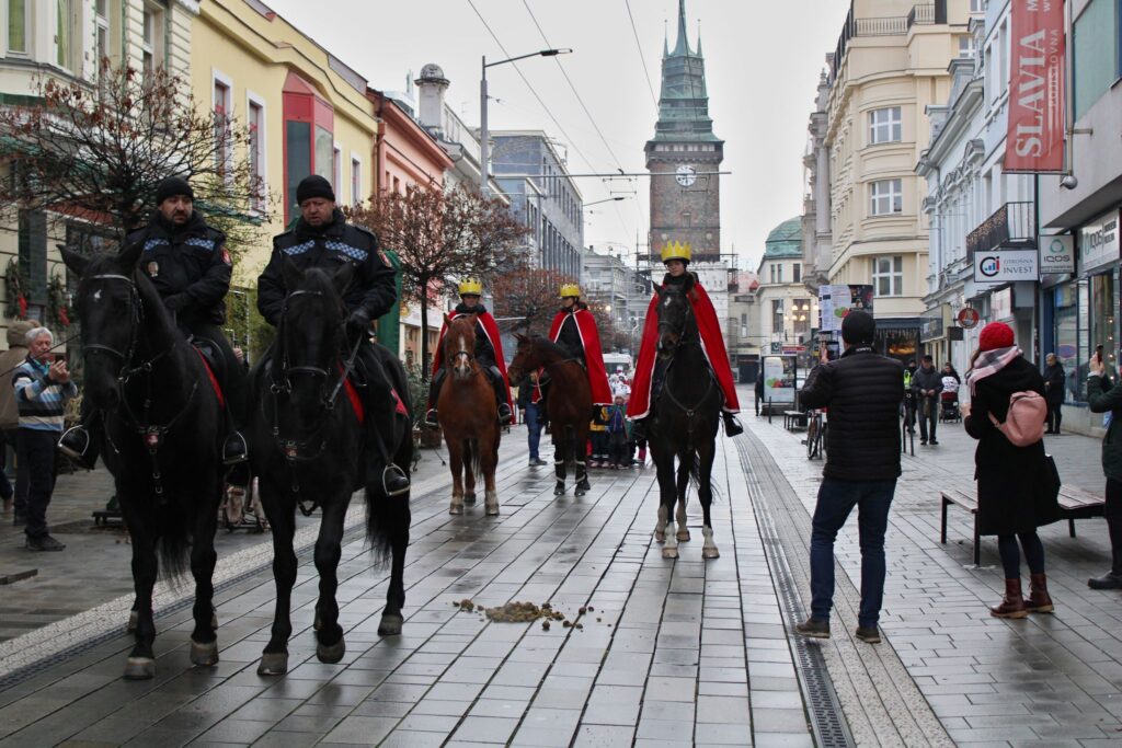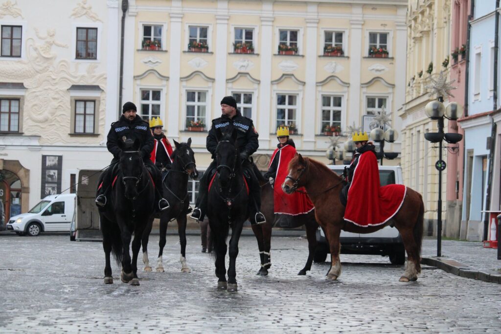 Tři královny dorazily na Pernštýnské náměstí, aby 6. ledna zahájily Tříkrálovou sbírku pořádanou Oblastní charitou Pardubice.