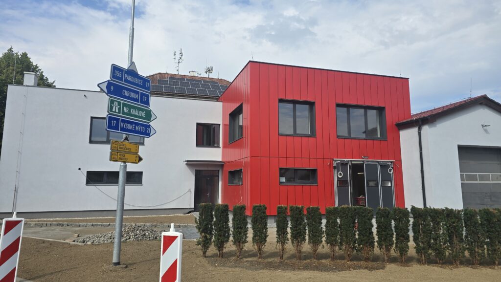 Výstavba nové hasičské stanice v Hrochově Týnci se blíží ke svému dokončení