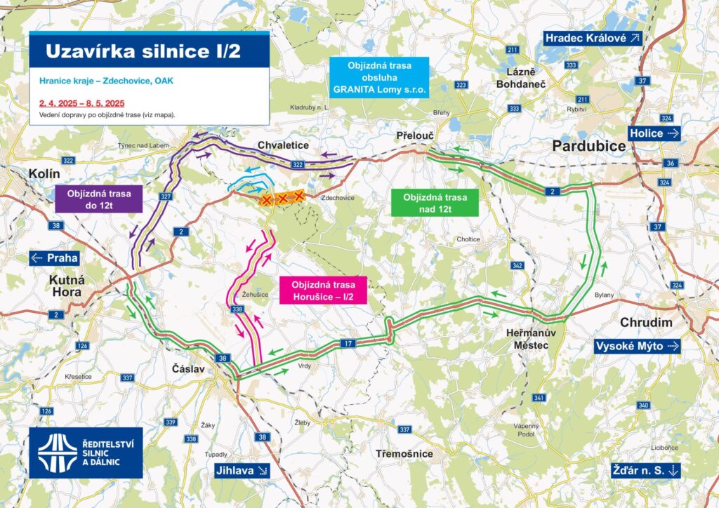 Ve středu 2. dubna začalo Ředitelství silnic a dálnic na silnice I/2 mezi Zdechovicemi a hranicí Pardubického kraje opravovat asfaltový povrch vozovky a nezpevněné krajnice. Opravovat se má do 8. května a řidiči budou muset využívat objízdné trasy.