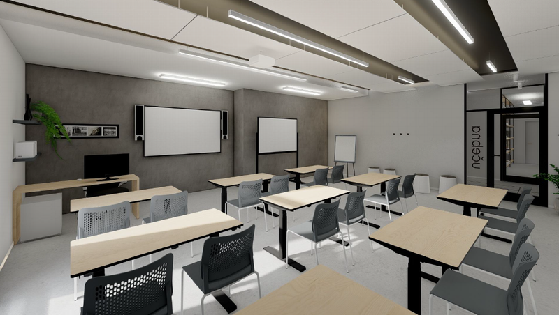 Novými technologiemi a mobiliářem budou vybaveny nejen školicí místnosti, ale i tréninkové prostory, modelový byt pro účely nácviku krizových situací a prostory pro tréninková vozidla ZZS sloužící k teoretické a praktické výuce. Nebude chybět ani místnost k uložení výukových pomůcek a modelů pro nácvik záchrany života. Potřebné zázemí tu najdou lektoři i studenti, včetně sociálního zařízení.