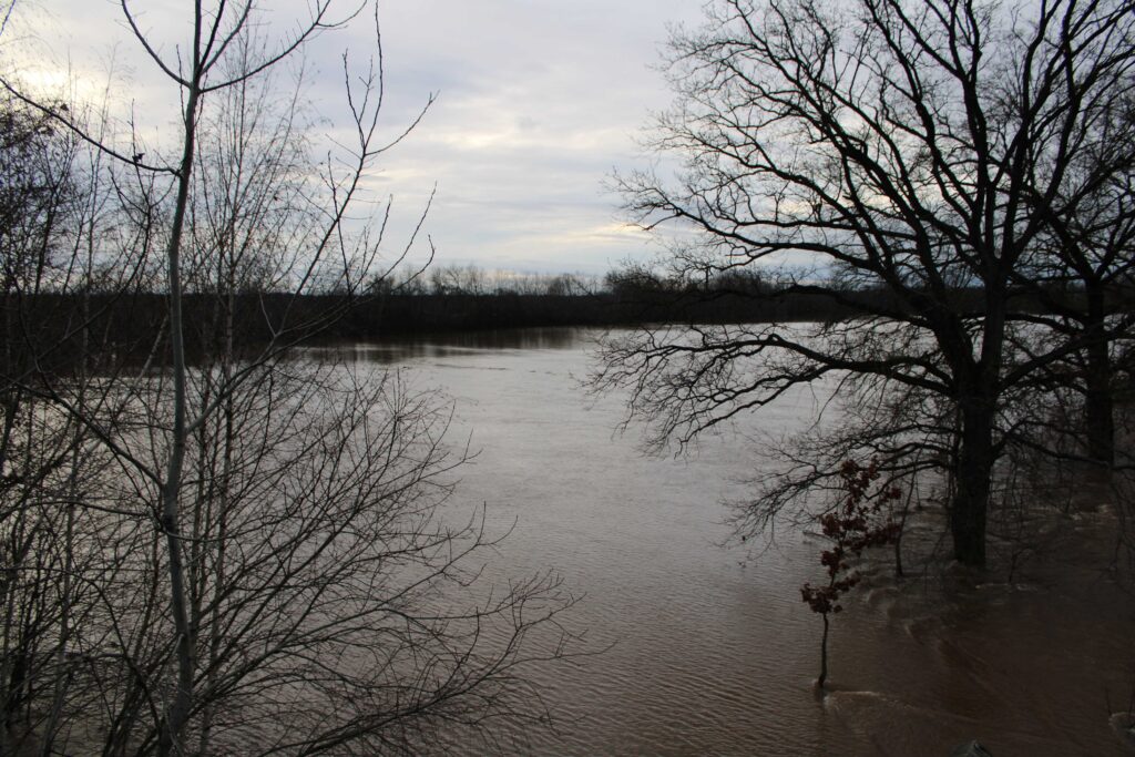 Novohradce a v jejich přítokách, dále na řece Doubravě a třetí povodňový stupeň byl vyhlášen